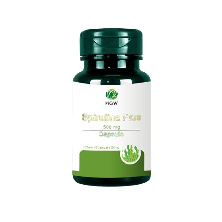 Suplemento elaborado a partir de espirulina, alga natural que conserva sus vitaminas, minerales, clorofila, proteínas y ácidos grasos esenciales con perfil característico.