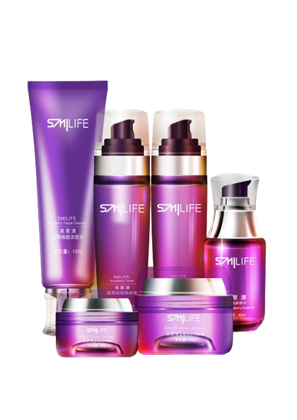 Set facial con productos de arándano Smilife: tónico, limpiador, crema y esencia. Ideal para hidratar y revitalizar la piel. Contiene 6 unidades.
