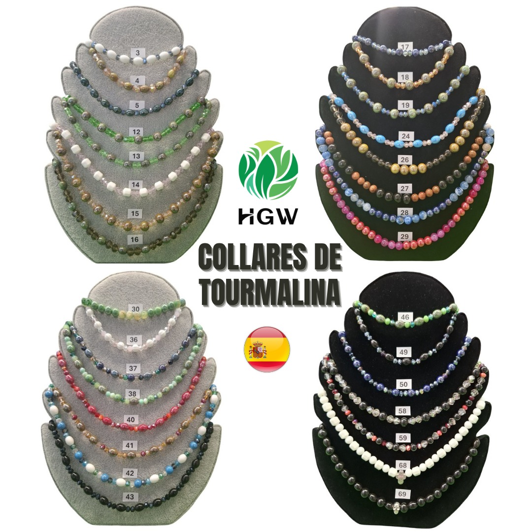Collar elaborado a mano con piedras naturales de turmalina. Presenta un diseño sencillo, elegante y adaptable a diferentes medidas, conservando sus características originales.