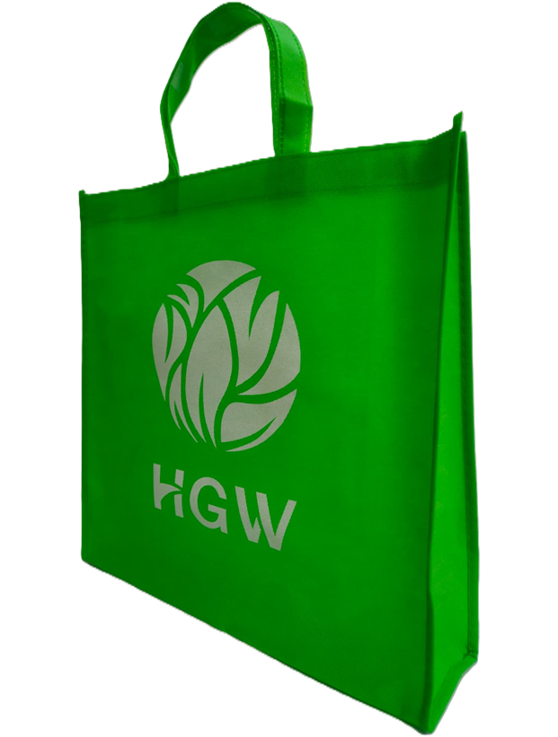 Bolsa de compra color verde, resistente y reutilizable. Ideal para presentar productos o regalos de la línea natural.
