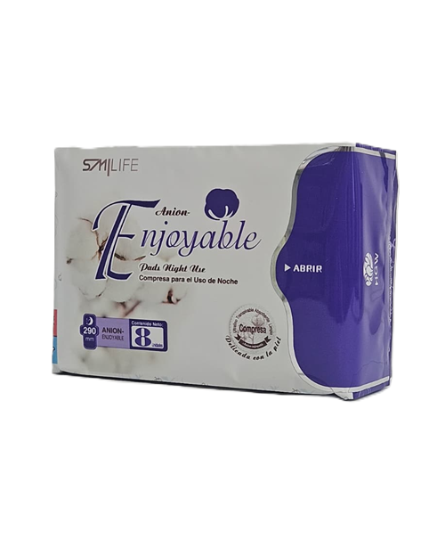 Compresa nocturna con textura de algodón suave y banda de turmalina. Presenta un diseño multicapas y anatómico, con materiales de calidad, adaptada para uso nocturno.