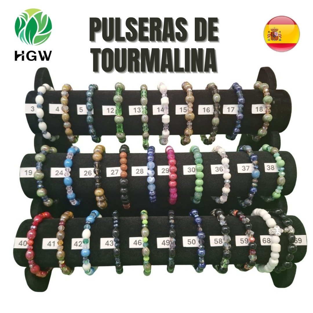 Pulsera elaborada con piedras naturales de turmalina, hecha a mano. Presenta un diseño sencillo, elegante y adaptable a diferentes medidas, conservando sus características originales.